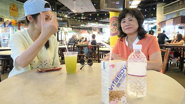 因為我堅持要看夜景模式,所以在這大熱天的,我們坐在樓下的美食街,點了杯飲料喝